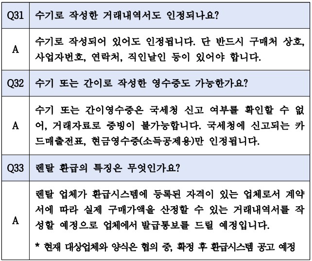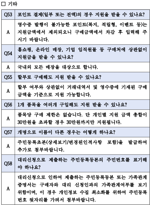 | 환급방식 | 구매가의 10%, 최대 30만 원 | 품목별 최대 30만 원 |