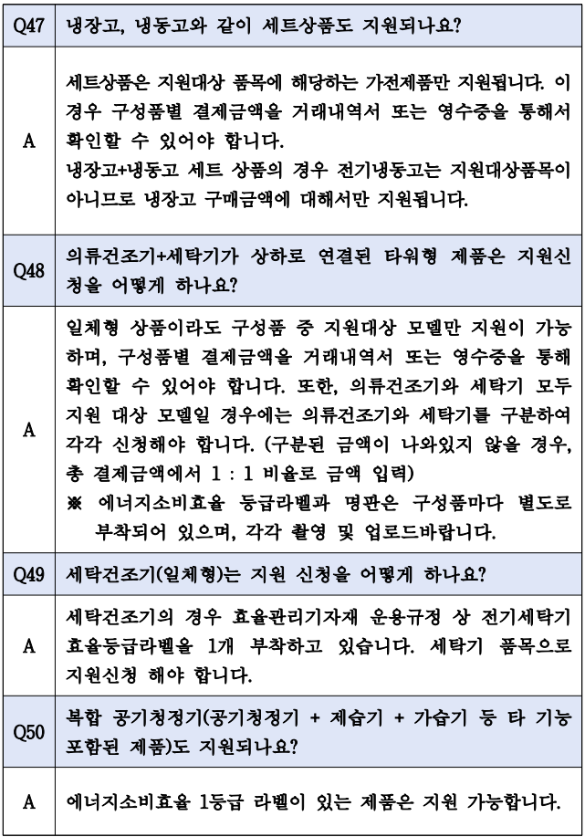 집단에너지사업법에 따라 구역전기사업 지구 내 고객은 일부 품목 지원이 제한될 수 있으니, 구매 전 반드시 해당 사업자에게 문의해 주시기 바랍니다.