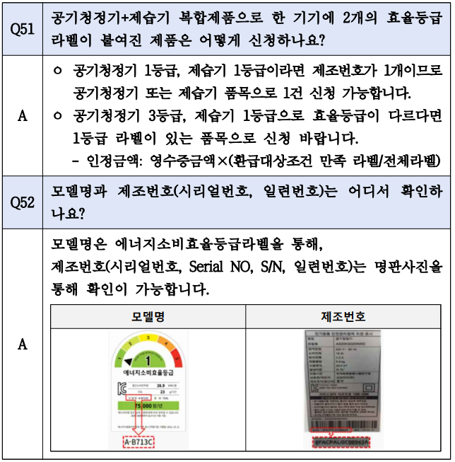 단, 동일 가전제품(예: 동일 제조번호)을 두 사업에 동시에 신청할 경우